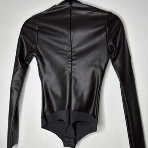 NWT Skims SET Soot Faux Leather Long Sleeve High Neck Bodysuit Biker Shorts XS