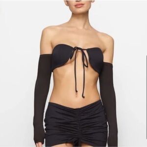 NWT Skims Signature Swim Long Sleeve Bikini Top in Onyx Women’s Sz M