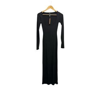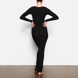 Skims Soft Lounge Ribbed Long Sleeve Dress Onyx Women’s Size Large