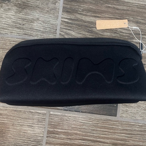 Stylish black pouch with embossed skims logo. Perfect for organizing essentials.