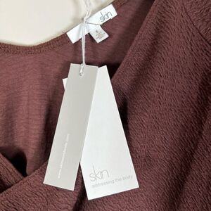 Skin Worldwide is sold on Revolve. Original retail $125. Color is Port which looks brownish red. Please see photos for fit and size guide. You can wear on or off shoulder.