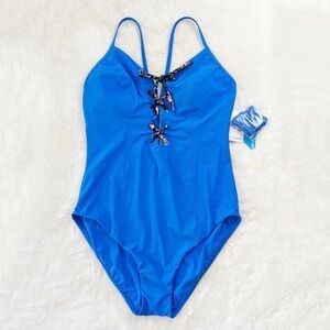 NWT Skinny Dippers Lacey Tie Breaker One Piece Swimsuit Blue
