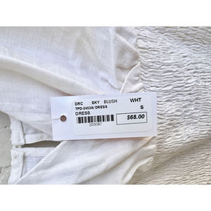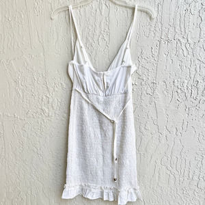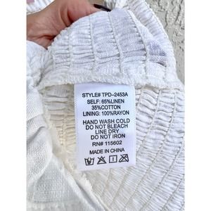 NWT Sky Blush Sleeveless Linen Smocked Ruffle V Neck Mini Dress White Size Small