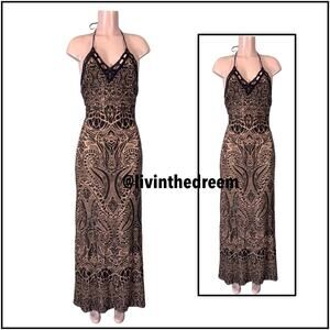 NWT Sky Brand Nude & Black Sequin Maxi Dress SZ L $299