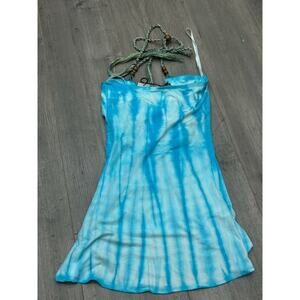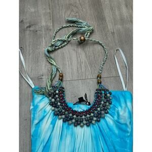 NWT Sky Womens Tank Top Sleeveless Tie Dye Beaded Halter Neck Blue Boho Size XS