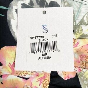 NWT Skye Alessia Hi Waist Ruched Bikini Bottom Black Kaleah Print Size Small NEW