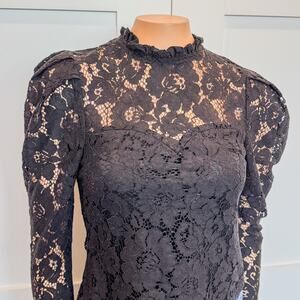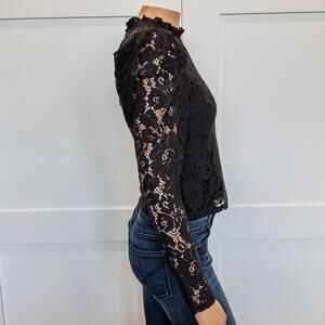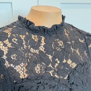 NWT- Skylar High Neck Black Lace Knit Gothic Blouse, Side Zipper, Women’s Small
