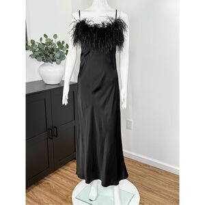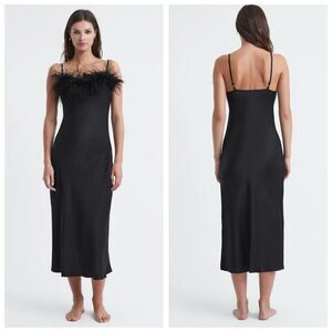 NWT Sleeper Boheme Slip Dress with Feathers in Black Medium
