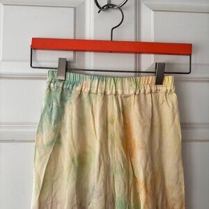 NWT Sleeper Silk Satin Pajama Set Tie Dye Yellow Mimosa Party Loungewear XS