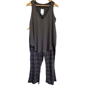NWT Sleeveless V Neck Razor Top with Plaid Capri Pants Coordinated Set