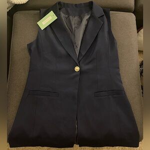 NWT Sleeveless Vest Blazer Longline Pearl Closure by New Collection