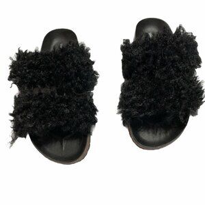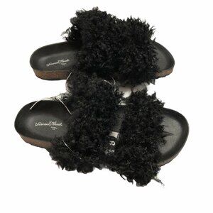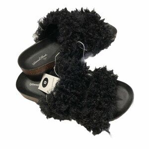 NWT Slides Faux Fur Sandals Womens Size 8 Black Universal Threads Ember Shoes Ne