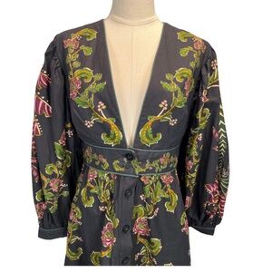 NWT Small FARM Rio Black Ravenala Puff Sleeve Mini Dress