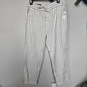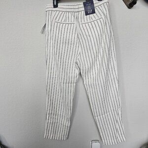 NEW WITH TAGS - "Easy Pant" from Gap - Mid Rise, Elastic Waist, Tapered Leg, Ankle Length. Sleek slim navy/black striped off white fabric (see details in photo).