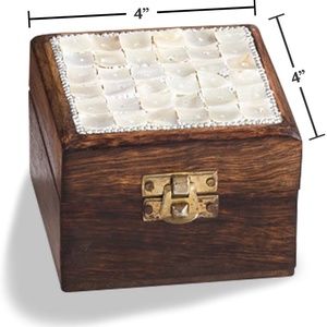Exquisite mother of pearl set in wooden base, square shaped keepsake box