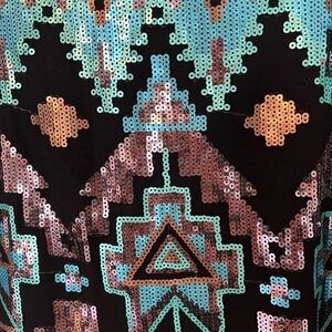 NWT Small Sequin Gold Turquoise and Black Mini Skirt Boho Vibe