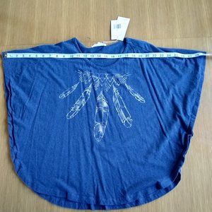 NWT Small Synergy Blue Feather Graphic Circle Top Teal Dreams