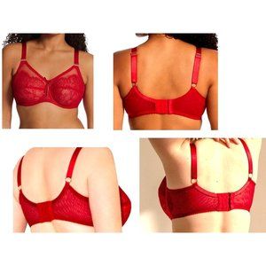 NWT Smart Sexy Pin Up Unlined Underwire Bra 46DDD Red Sheer Floral Valen…