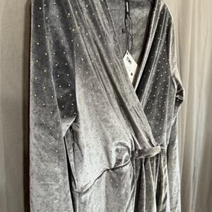 NWT Smash! Okaina Grey Velvet Wrap Dress Gold Dots Velvetcore Women's Small