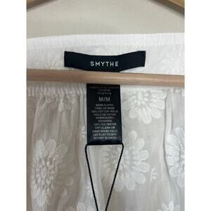 NWT Smythe Floral Embroidered Square Neck Puff Sleeve Top White Size: Medium