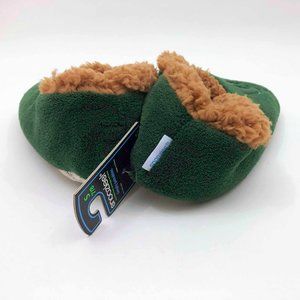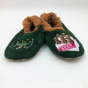 NWT, New With Tags Sales Samples. Men's Snoozies Drab Green Football & Beer slippers. One slipper has a football play embroidered on it with the x's and 0's marking the play with a football. The other slipper has a 6 pack of beer appliqued on it. The perfect way to relax while watching your favorite team. Soft and comfortable.