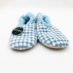 NWT Snoozies Women's Harlequin Classic Light Blue & White Slippers Medium 7/8 -