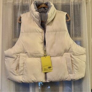 Stylish white puffer vest. Perfect for layering. Comfortable and chic.