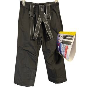 NWT Snow pants black adj suspenders adj cinching waist pockets with closure