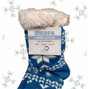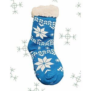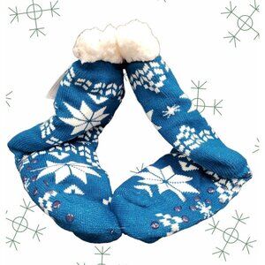 NWT Snowflake Slipper Socks Sherpa Lined No Slip Grips Cushioned One Size Blue