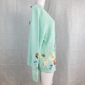 NWT So Forth Cardigan Womens Sz M Blue Green Aqua Linen Floral Beaded Sweater