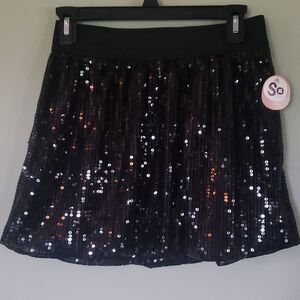 ✨ Brand new with tags! This So Girls size 10/12 black skirt is a total showstopper with a shimmery sequin overlay and tie waist that adds fun and sparkle.