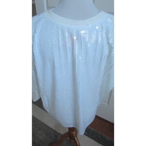 New With Tags So Festive Simply Southern, White Christmas Nutcracker Sequined Oversized top with short Sleeves. Stunning look with long skirts, holiday palazzo pants. Lined Top for comfort. Size Medium Chest 42" Length 24" PET and Poly blend.