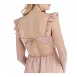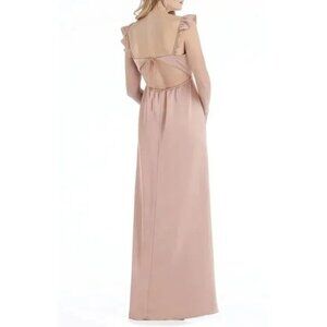 NWT Social Bridesmaids Ruffle Sleeve Tie Back Charmeuse A-Line Gown Size 2 #8207
