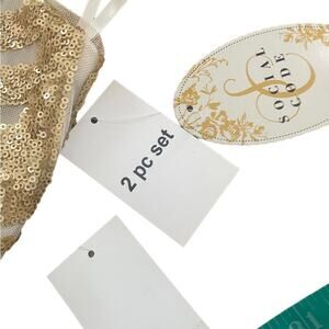 Stunning NWT Social Code tulip gold sequin 2piece skirt and top size 13