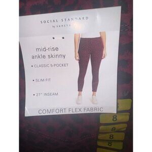 These ankle skinny jeans by Social Standard offer a bold fashion statement with their striking leopard print. Constructed with comfort flex fabric, they provide a flattering slim fit. The classic 5-pocket design ensures practicality while adding style to your wardrobe. Crafted for versatile wear, these jeans can be dressed up or down.