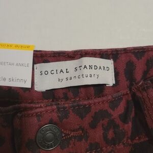 NWT Social Standards Ankle Skinny Sketchy Cheetah Red Pants Size 8