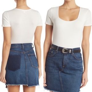 A square neckline adds collarbone-framing elegance to this bodysuit that stays super sleek all day long.