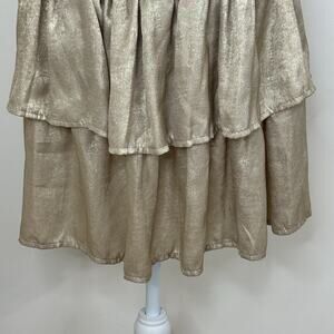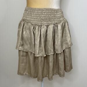 NWT Sofia Made In Italy Orleans Smocked Tiered Mini Skirt One Size Gold