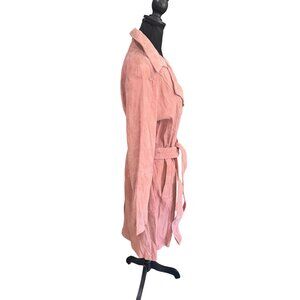 NWT Soft Blush Pink Suede Double Breasted Trench Coat Leather Luxe Designer City
