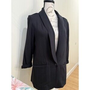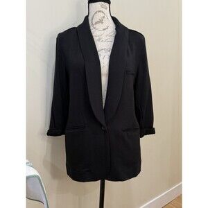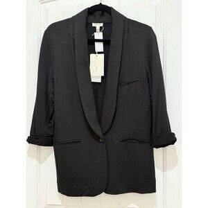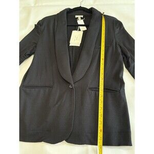 The NWT Soft Joie Neville Blazer in Black is a stylish open front jacket designed for women in size L. Made from rayon knit fabric with polyester insulation, this blazer is perfect for casual occasions during the fall and spring seasons. The button closure adds a touch of sophistication to this versatile wardrobe piece from the Soft Joie brand. With its classic blazer style and comfortable design, this jacket is a must-have for any woman looking for a chic and practical outerwear option.