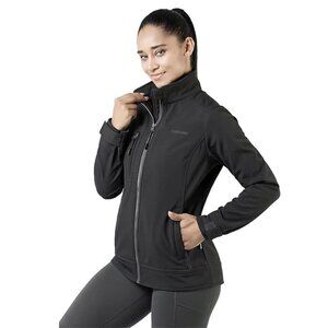 NWT Soft Shell Jacket Womens L Windproof Fleece Lined Zip Up Outdoor Black