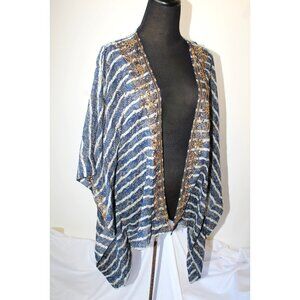 NWT Soft Surrounding Kimono Sequins & Beaded Open Front Sheer L/XL Floral Boho