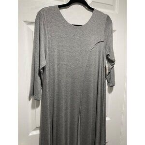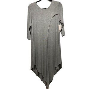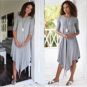 NWT Soft Surroundings Alexandra Gray Layered Dress Size Medium. Features raw edge seaming. softl and flowing. Lagen look, minimalist style with 3/4 sleeve and handkerchief style hem.