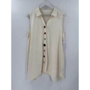 NWT Soft Surroundings Danielle Button Up Tank Womens Large Ivory White Cotton