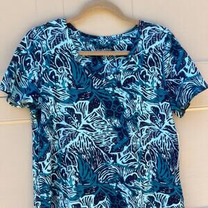 NWT Soft Surroundings Isabel Pima Tunic Tee Abstract Aqua Blue Small