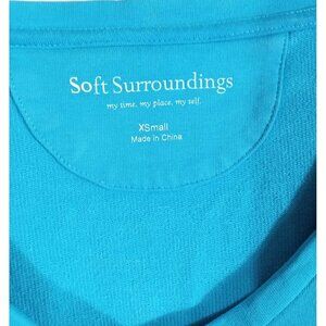 Experience the comfort and style of Soft Surroundings' NWT Jersey Knit Cold Shoulder Sweater Top Shirt in solid blue. This XS women's top features cut-out shoulders and ultra-soft material for a chic, comfortable fit.