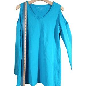 NWT Soft Surroundings Jersey Knit Cold Shoulder Sweater Top Shirt Solid Blue XSm