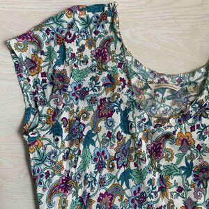 New with tags. Your soon-to-be favorite dress has all the breezy comfort you need for summer with swingy tiers of wildflowers waterfalling to the contrast border. Full length with scoop neck and short, cap sleeves. Stretchable and comfortable.