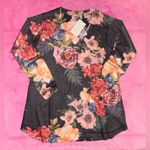 NWT Soft Surroundings Midnight Blooms Gray Floral Sweater