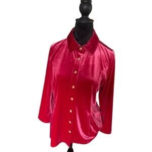 Vintage red velvet shirt, gold button-down blouse, holiday party top, retro velvet blouse, new with tags velvet shirt, Christmas red shirt, elegant velvet top, vintage gold button shirt, 3/4 sleeve red blouse, timeless holiday fashion, pink